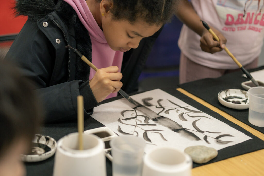 I love painting here! The bamboo brushes are so soft and they hold loads of water, which is really cool. Next time I want to paint big mountains. I want to do this every day! — Ivie, Guest of Children’s Workshop